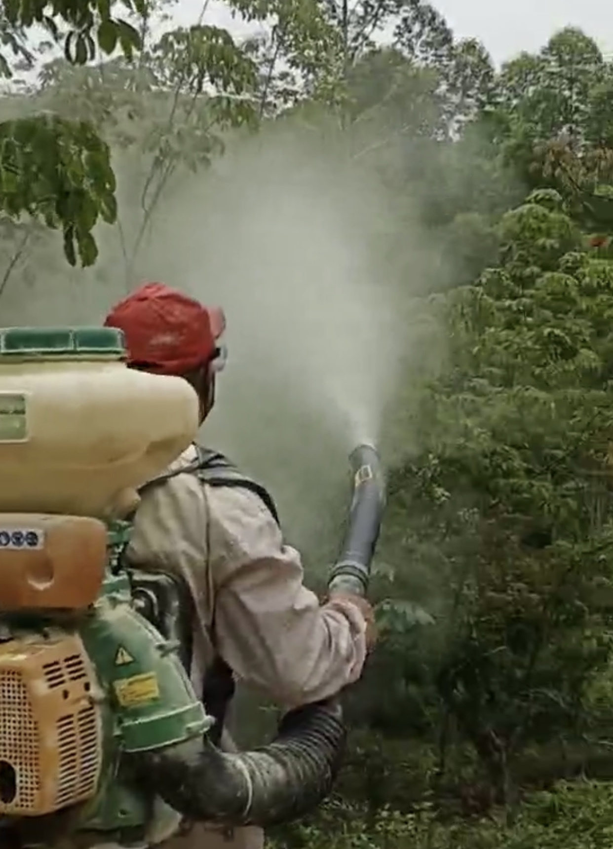 大坪農(nóng)場(chǎng)十分重視橡膠基地“兩病”的防冶工作,把防冶“兩病”工作列入當(dāng)前的重要議事日程。在已深入調(diào)查了解的基礎(chǔ)上,根據(jù)各林段、品系以及蟲(chóng)害的程度,制定防冶工作方案,有計(jì)劃,有步驟地分期實(shí)施。階段來(lái),共出動(dòng)144人次,分成4個(gè)小組,全面對(duì)橡膠基地進(jìn)行噴藥,技術(shù)人員及時(shí)跟進(jìn),組織檢查“回頭看”,盡量把“兩病”造成的損失降到最低限度。